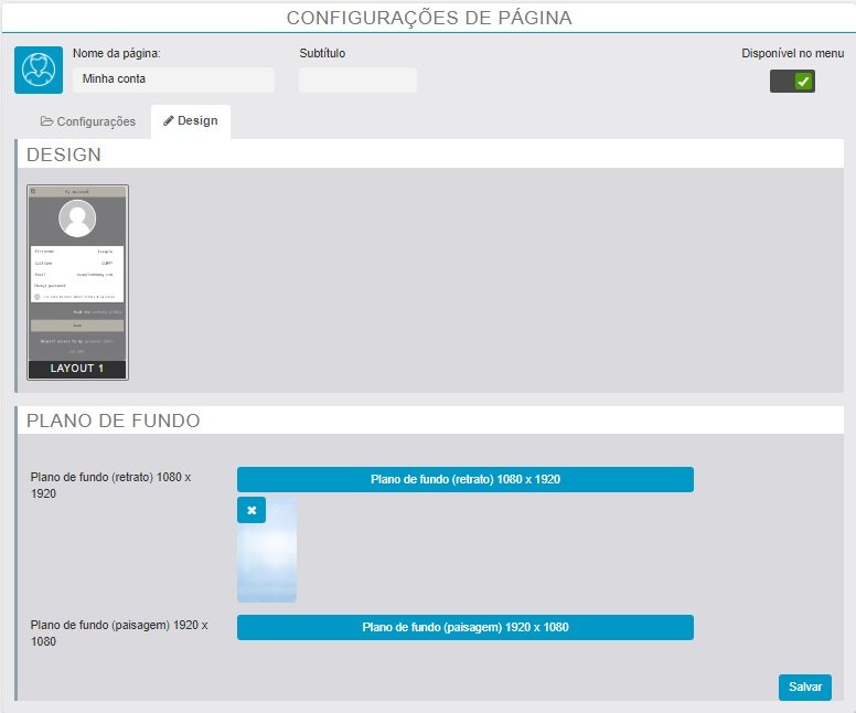 Na aba design você poderá definir o plano de fundo desse recurso.