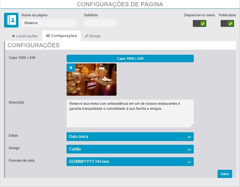 Nesta aba você pode configurar o layout do recurso. Para Datas você pode escolher Data única ou Checkin e Checkout .