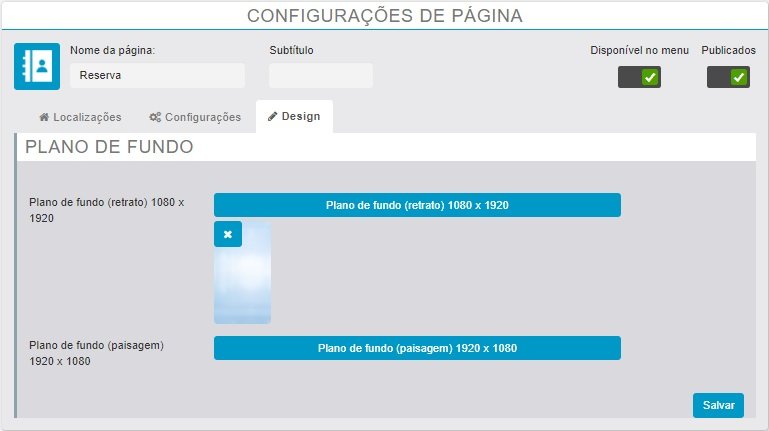 Na aba design você define o plano de fundo desse recurso (funcionalidade do aplicativo).